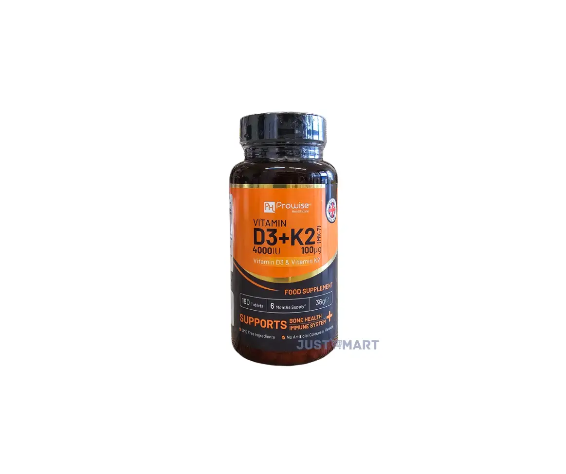 | Ingredients | Bulking Agent (Dicalcium Phosphate, Macrocrystalline Cellulose), Vitamin D3 (Cholecalciferol), Vitamin K2 (MK-7), Anti-Caking Agents (Magnesium Stearate, Silicon Dioxide). |