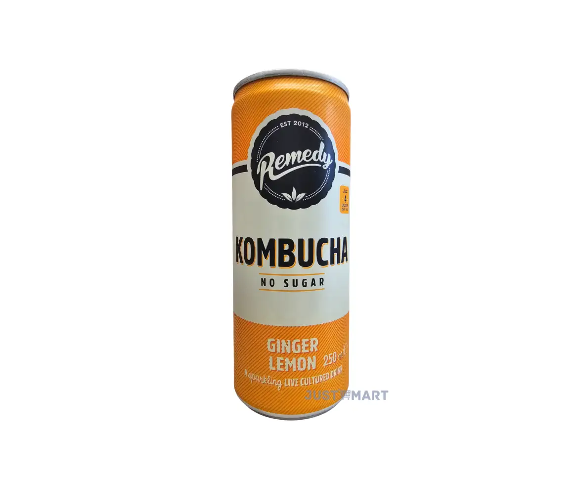 | Ingredients | Raw Kombucha (Carbonated Water, Sugar*, Black Tea Leaves, Green Tea Leaves, Traditional Kombucha Culture), Ginger Juice (2%), Flavour Enhancer: Erythritol, Lemon Juice, Natural Ginger Flavouring, Sweetener: Steviol Glycosides, *No Sugar remains after Remedy's traditional long-aged fermentation |